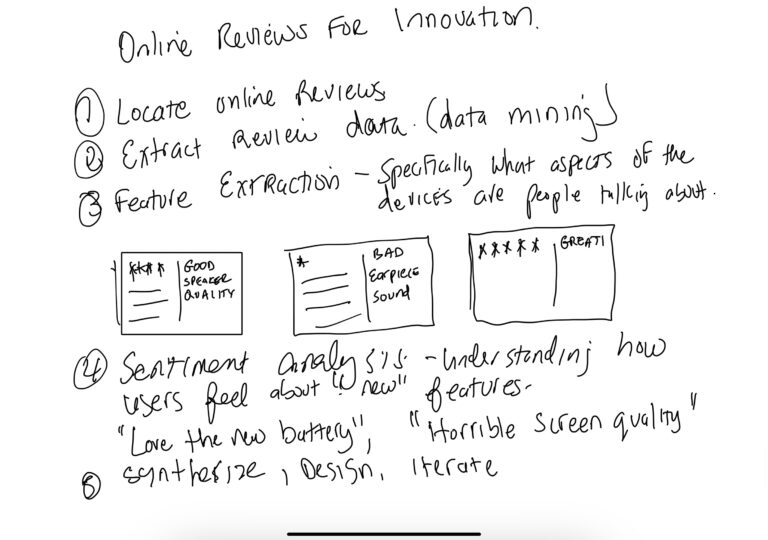 I believe that going into the field to collect data, is one of the best ways to obtain the true feelings of your target audience. The information gleaned from reviews is often data that directly comes from users of the products. Unfortunately, the users most apt to leave reviews are those that are the happiest with a product and those that are least happiest with a product, therefore, reviewers may be more representative of product user outliers rather than the typical user. Nonetheless, this strategy for innovation is useful as there is a notion that 80% of product issues are driven by 20% of issues. So understanding the pain points of the users and starting there, may help provide information for product designers to make products better and bring them in line with the expectations of the user.