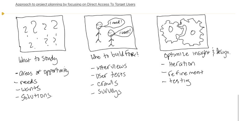 In the article The foundation of Product, one of the most critical aspects of project planning when it comes to product innovation is ensuring that project managers have Direct Access To Users and Customers. This is critical because most other steps rely on the integrity of this foundational assumption. If there is no direct access to actual users, project management teams run the risk of developing products that do not and will not address the most important needs and wants of their target users.